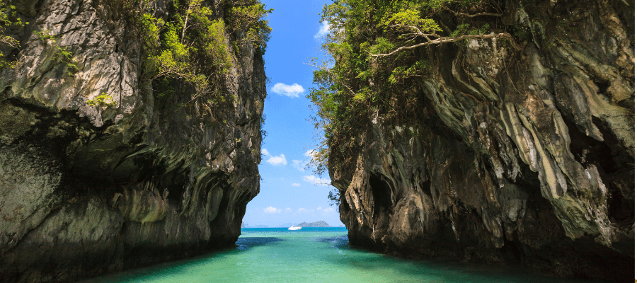 • Phang Nga Bay – Stunning limestone rocks protruding out of deep green-colored waters.